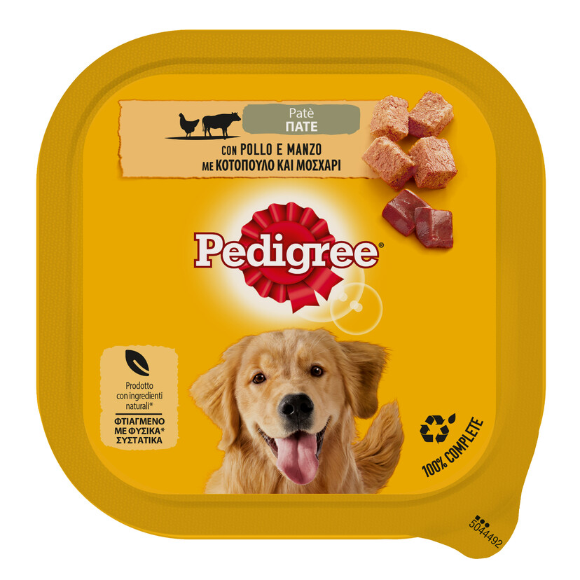 PEDIGREE® Πλήρης Υγρή Τροφή Κοτόπουλο & Μοσχάρι σε Δισκάκι 300g. Τα προϊόντα μας βοηθούν να έχει ο σκύλος ό,τι χρειάζεται καθημερινά: υγιή οστά, υγιές δέρμα και τρίχωμα, και υγιές ανοσοποιητικό σύστημα. Η τροφή για σκύλους Pedigree έχει αναπτυχθεί με τη βοήθεια κτηνιάτρων και διατροφολόγων του Waltham™ Centre for Pet Nutrition. Περιέχει όλα τα απαραίτητα θρεπτικά συστατικά για τη βέλτιστη λειτουργία της πέψης, για υγιές δέρμα και τρίχωμα, για ισχυρή φυσική άμυνα και γερά οστά. Οι κονσέρβες της Pedigree δεν περιέχουν τεχνητές χρωστικές και αρωματικές ουσίες ούτε συντηρητικά.