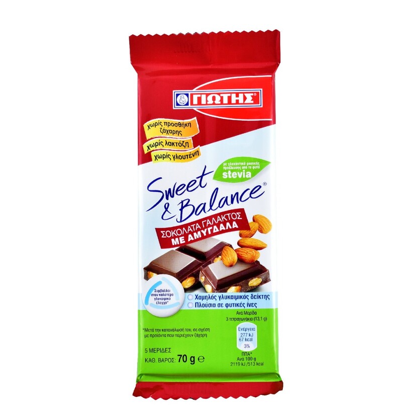 Σοκολάτα ΓΙΩΤΗΣ Sweet&Balanceγάλακτος με αμύγδαλο και Stevia (70g)