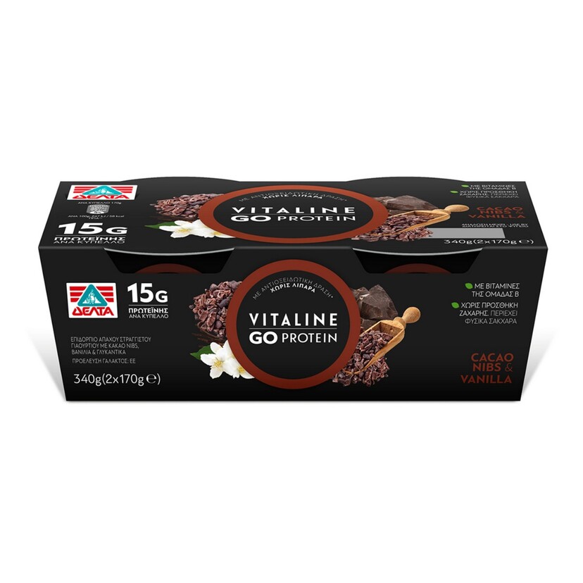 Γιαούρτι επιδόρπιο VITALINE Go Protein με νιφάδες κακάο και βανίλια (2x170g)