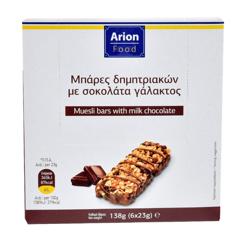 Μπάρες δημητριακών ARION FOOD με σοκολάτα γάλακτος (6x23g)