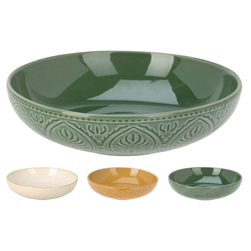 Πιάτο stoneware βαθύ Embossed Leaves 20cm σε 3 χρώματα