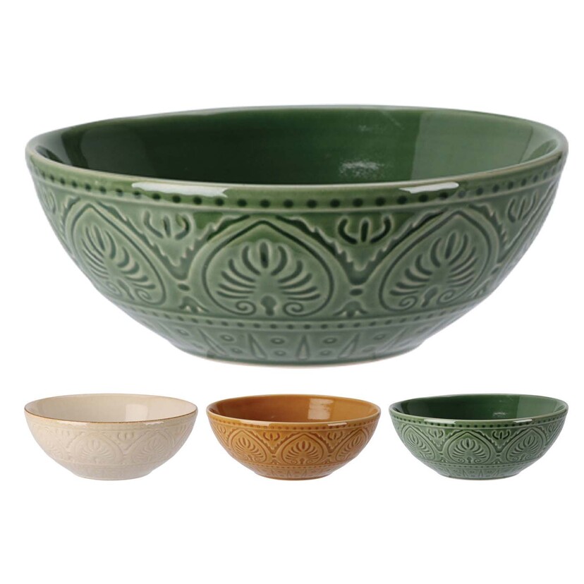 Προσθέστε φυσική κομψότητα και πρακτικότητα στο καθημερινό σας σερβίρισμα με αυτό το όμορφο μπολ stoneware 15cm, με ανάγλυφο σχέδιο φύλλων. Η κεραμική υφή, το προσεγμένο φινίρισμα και το διακριτικό μοτίβο φύλλων προσδίδουν έναν γήινο και εκλεπτυσμένο χαρακτήρα. Με χωρητικότητα 650ml και ανθεκτική κατασκευή, είναι ιδανικό για δημητριακά, σούπες, σαλάτες, γλυκά ή snacks. Διατίθεται σε τρεις φυσικές αποχρώσεις – μπεζ, πράσινο και κίτρινο – που συνδυάζονται τέλεια με το υπόλοιπο σερβίτσιο της ίδιας σειράς.