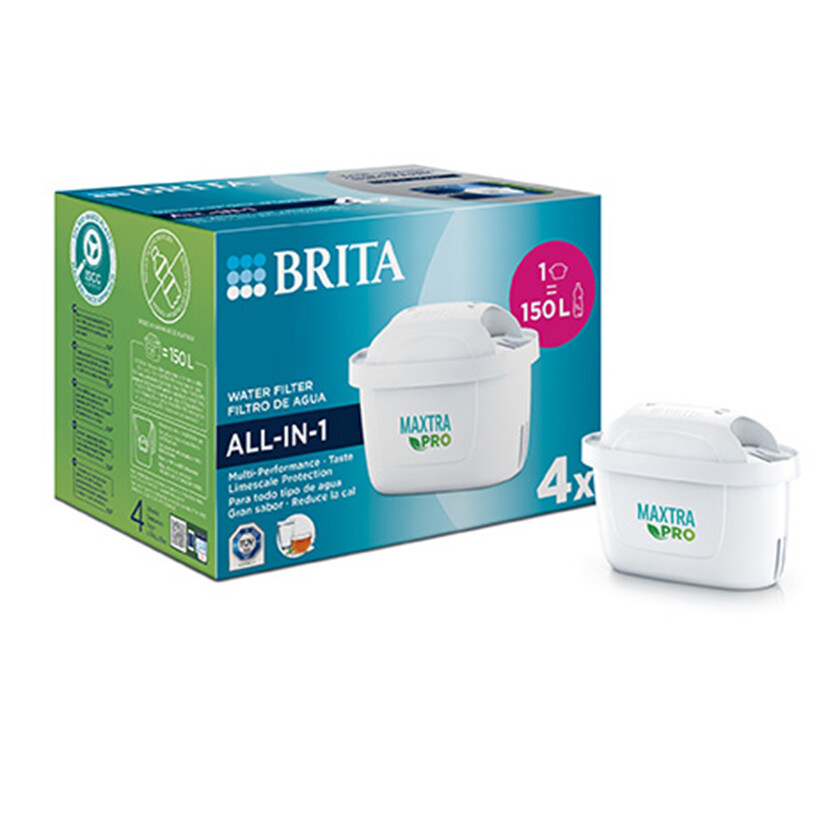 BRITA ανταλλακτικά φίλτρα MAXTRA PRO ALL-IN-1 για επιτραπέζια συστήματα φιλτραρίσματος νερού BRITA. Βελτιώνει σημαντικά τη γεύση του νερού της βρύσης σας και προστατεύει τις συσκευές σας, μειώνοντας το χλώριο, τα άλατα, τα βαρέα μέταλλα και τις οργανικές ακαθαρσίες των σωληνώσεων. Το φίλτρο MAXTRA PRO ALL-IN-1 ταιριάζει και σε όλα τα συστήματα BRITA που δέχονται το φίλτρο BRITA MAXTRA.