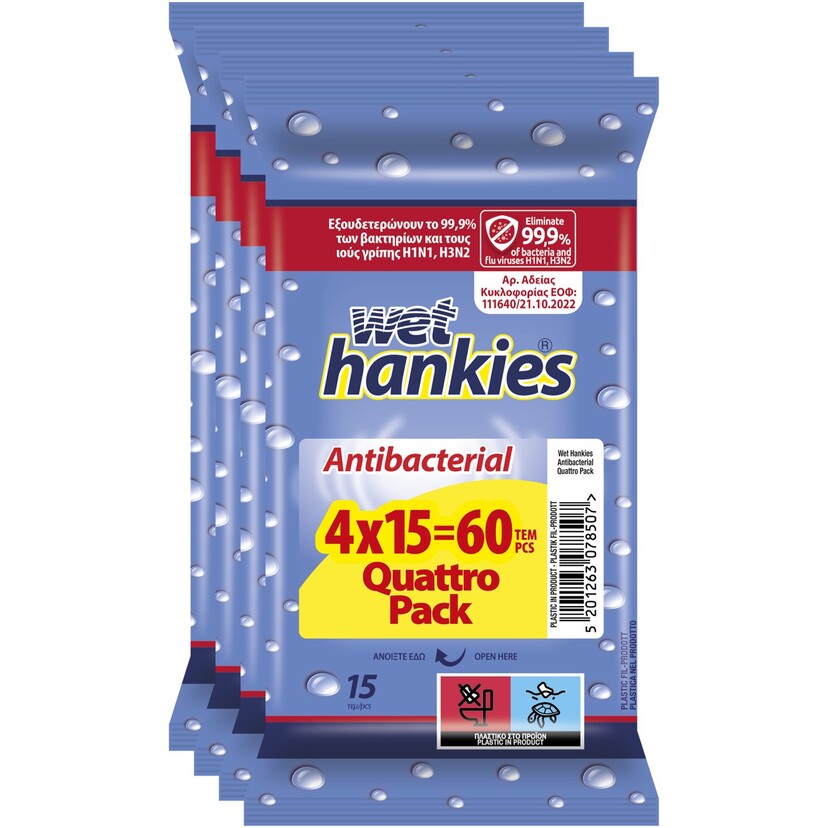 WET HANKIES αντιβακτηριδιακά μαντηλάκια 4x15τεμ.