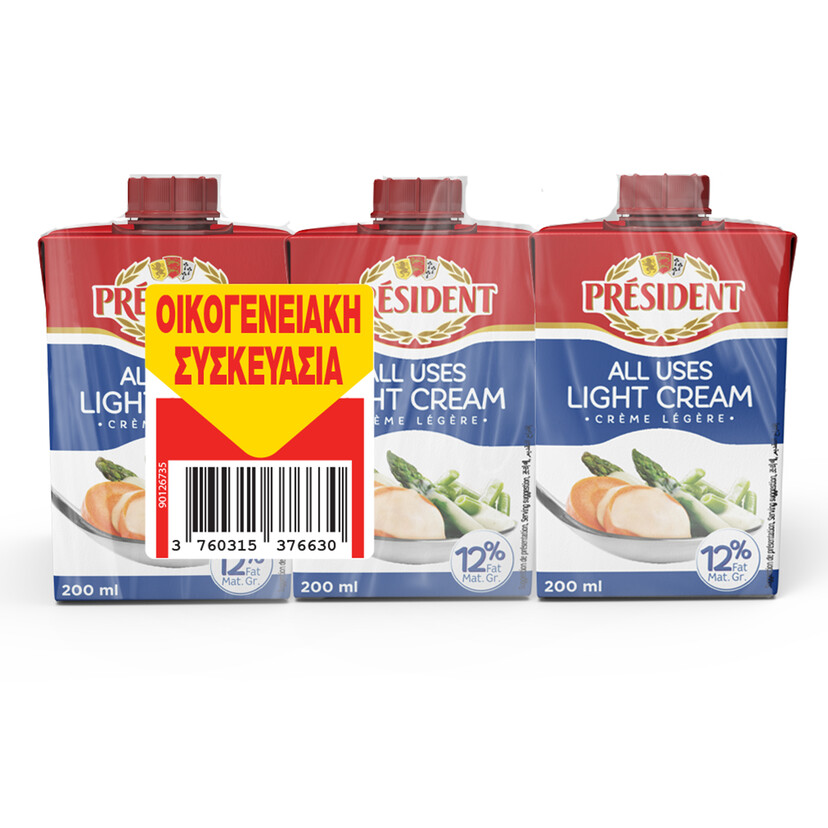 PRESIDENT κρέμα γάλακτος 12% 3x200ml