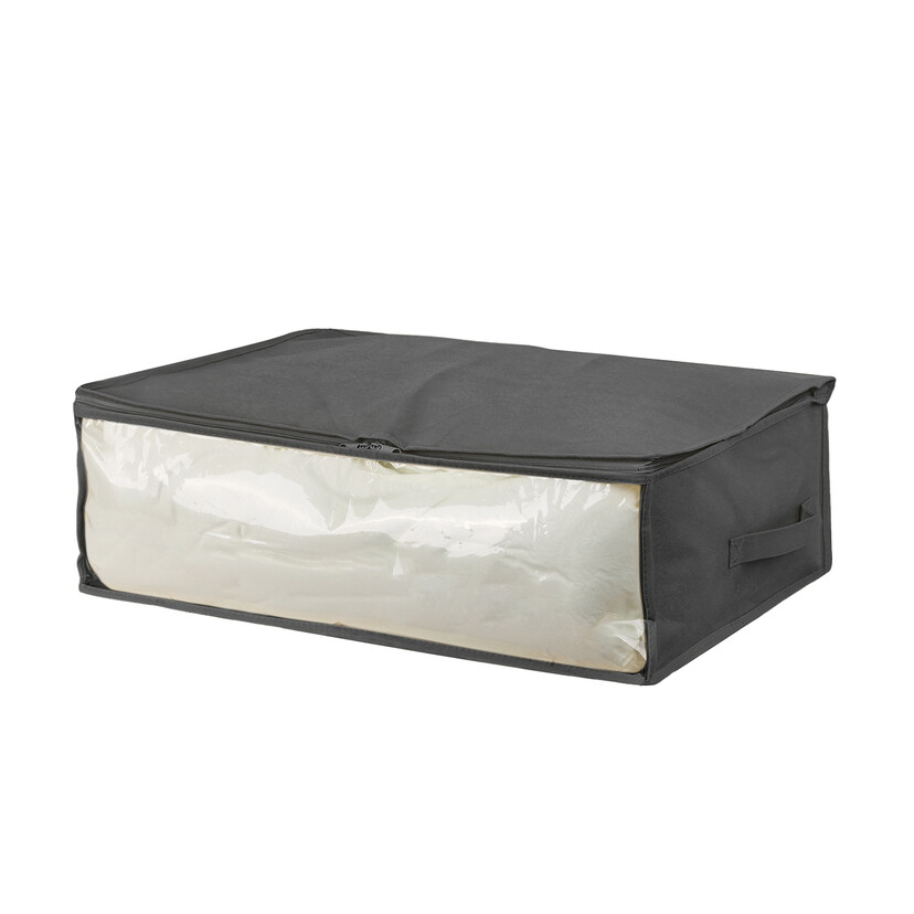 Περιέχει 1 θήκη 60x45x20cm γκρι Κατάλληλη για φύλαξη ρούχων και κουβερτών Με ανθεκτικό φερμουάρ και διαφανές παράθυρο 75% μη υφαντό ύφασμα, 20% peva, 5% άλλο (φερμουάρ)