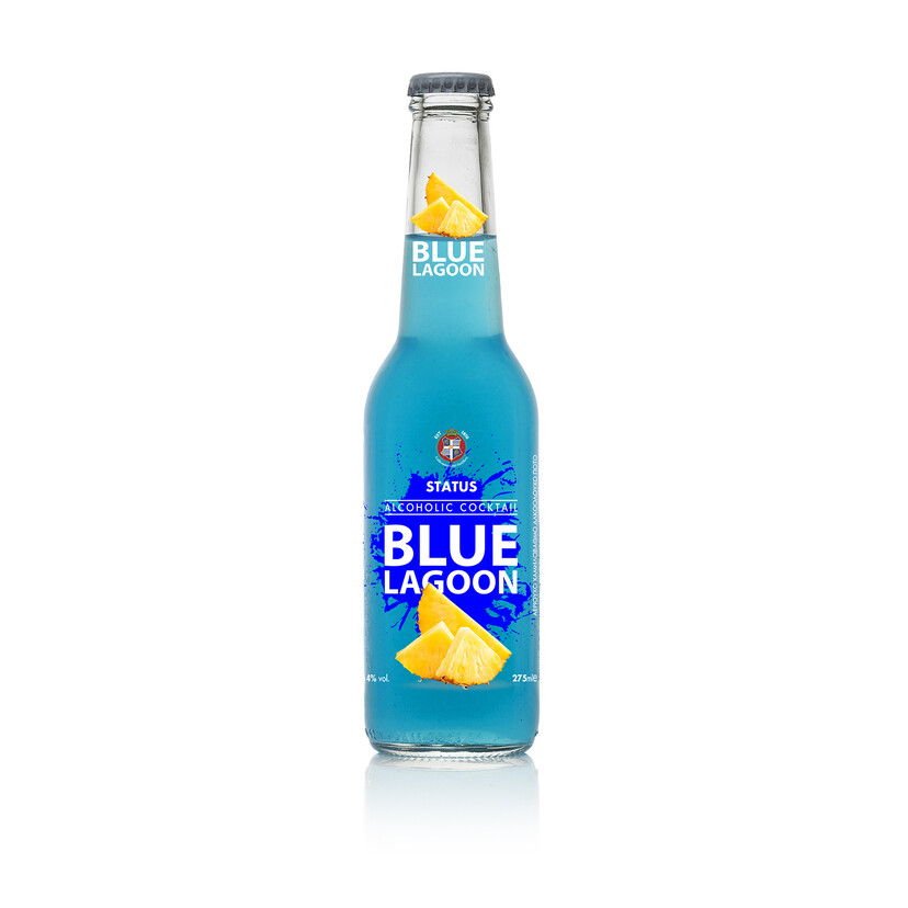 Δροσερό και φρουτώδες cocktail STATUS Blue Lagoon με 4% αλκοόλ, έτοιμο για κάθε στιγμή απόλαυσης.