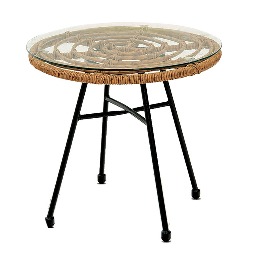 Τραπέζι μεταλλικό RATTAN με τζάμι μπεζ