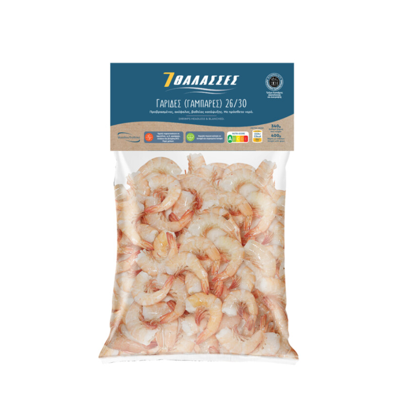 7ΘΑΛΑΣΣΕΣ γαρίδες ακέφαλες Ινδίας 26/30 κατεψυγμένες FAO51 400g