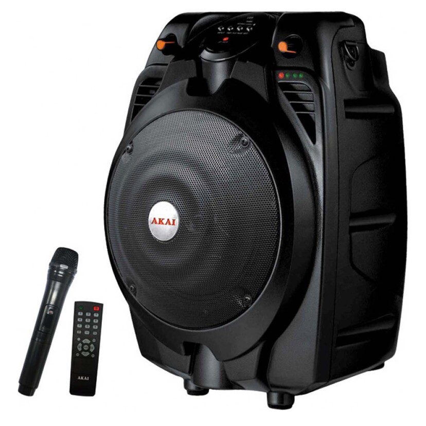 AKAI Karaoke ασύρματο μικρόφωνο SS022A-X6 ΒΤ Φορητό ηχείο και ενισχυτής της AKAI με δυνατότητα αναπαραγωγής mp3, wma, wav αλλά και από κάρτα μνήμης. Διαθέτει ραδιόφωνο, είσοδο μικροφώνου και ενσωματωμένη επαναφορτιζόμενη μπαταρία. Το AKAI SS022A-X6 υποστηρίζει ακρόαση φωνής και κιθάρας μέσω των ειδικών εισόδων και ασύρματο μικρόφωνο, ενώ η σύνδεση Bluetooth επιτρέπει αναπαραγωγή από κινητά, τηλεοράσεις, laptop ή tablet. Χαρακτηριστικά: Συνολική ισχύς: 30 W RMS PMPO: 120 W MP3 USB και υποδοχή καρτών SD / MMC / WMA / WAV Bluetooth ασύρματη σύνδεση 2 έξοδοι ήχου: 1 x 6.5" + 1 x 1" Ραδιόφωνο FM Τηλεχειριστήριο Περιλαμβάνεται ασύρματο μικρόφωνο Σύνδεση μικροφώνου και κιθάρας Είσοδος ήχου Ενσωματωμένη επαναφορτιζόμενη μπαταρία 2600mAh Διάρκεια αναπαραγωγής: 4-5 ώρες Χρόνος φόρτισης: 5 ώρες (αρχική 10 ώρες) Ευαισθησία εξόδου: 800 ± 30mV SNR ≥71dB Συχνότητα: 20Hz-20kHz Ρύθμιση έντασης, πρίμων, μπάσων, ηχούς Επιλογή 2.1 / 5.1 Υποστηρίζει MP3, MP4, PC, DVD, τηλεόραση, Laptop, Tablet, κινητά, ηλεκτρικό πιάνο κ.λπ.