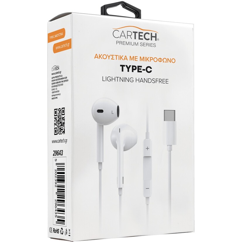 Ακουστικά TYPE-C με μικρόφωνο λευκά