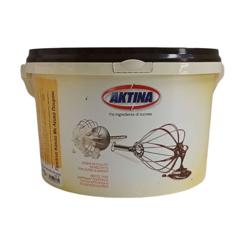 Δώστε στις δημιουργίες σας μοναδική γεύση και τραγανή υφή με την πραλίνα ΑΚΤΙΝΑ με λευκά πουράκια, ιδανική για κάθε γλυκό σας έργο!