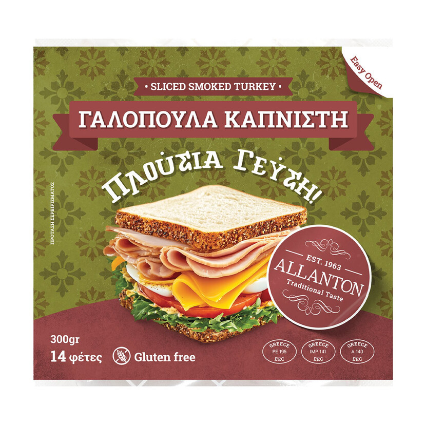 ΑΛΛΑΝΤΩΝ καπνιστή γαλοπούλα σε φέτες χωρίς γλουτένη 300g