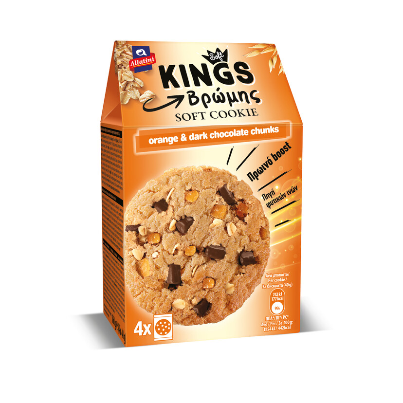 ΑΛΛΑΤΙΝΗ μπισκότα Kings Soft βρώμης πορτοκάλι & μαύρη σοκολάτα 160g