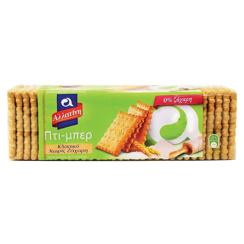 Τα κλασικά και αγαπημένα μπισκότα Πτι-Μπερ της Αλλατίνη, τώρα διαθέσιμα χωρίς ζάχαρη, αποτελούν την ιδανική επιλογή για όσους προσέχουν την πρόσληψη ζάχαρης. Απολαύστε τα μόνα τους ή συνοδεύστε τα με τον καφέ, το τσάι ή το γάλα σας. Επιπλέον, μπορούν να χρησιμοποιηθούν σε διάφορες συνταγές ζαχαροπλαστικής για ένα πιο ελαφρύ αποτέλεσμα.