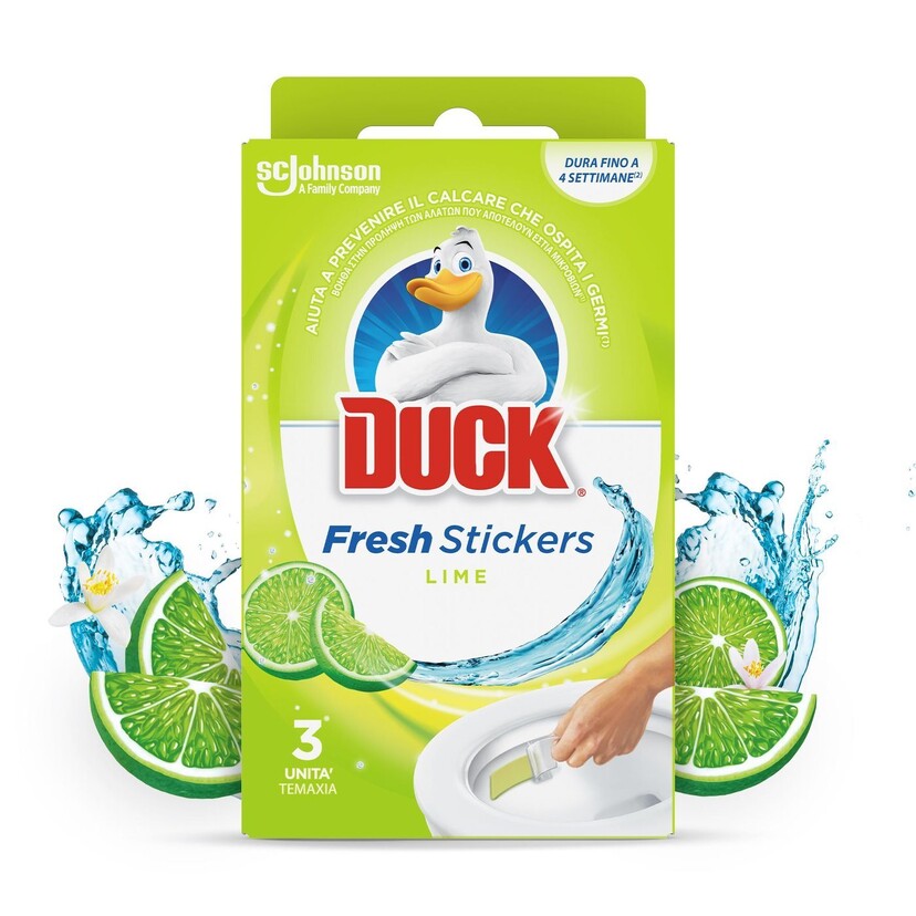 DUCK καθαριστικό λεκάνης τουαλέτας Fresh Patch Lime χωρίς θήκη 27g Περιγραφή Η σύνθεση τουDUCK® Fresh Patch - Lime αφήνει κάθε φορά που τραβάτε το καζανάκι, ένα προστατευτικό φιλμ σε ολόκληρη τη λεκάνη το οποίο βοηθά να αποτραπεί η συσσώρευση των αλάτων. Προλαμβάνει τα άλατα που αποτελούν εστία μικροβίων Διαρκεί μέχρι 4 εβδομάδες Εύκολη εφαρμογή Οδηγίες χρήσης 1. Βγάλτε το προϊόν από το φακελάκι του. Ανασηκώστε το χαρτί από τη μία πλευρά του gel. 2. Χρησιμοποιήστε το χαρτί για να τοποθετήσετε το gel κάτω από το χείλος της λεκάνης της τουαλέτας, σε σημείο όπου υπάρχει ροή νερού όταν τραβάτε το καζανάκι. Κολλήστε το gel πιέζοντας απαλά περιμετρικά. Μετά την εφαρμογή του, το gel ενδέχεται να προσελκύσει την περιέργεια μικρών παιδιών. Εφαρμόστε το προϊόν μέσα στη λεκάνη, σε σημείο όσο το δυνατόν λιγότερο ορατό από τα παιδιά. 3. Αφαιρέστε το χαρτί. Πετάξτε το χαρτί και τη συσκευασία στον κάδο σκουπιδιών και πλύνετε πολύ καλά τα χέρια σας. Τραβήξτε το καζανάκι για να ενεργοποιηθεί το προϊόν. Αντικαταστήστε το gel όταν διαλυθεί πλήρως ή καθαρίστε τα υπολείμματα κατά τη διάρκεια του τακτικού σας καθαρισμού.