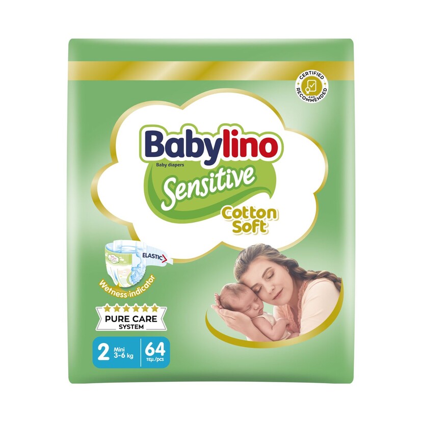 BABYLINO πάνες βρεφικές Sensitive Cotton Soft Nο.2 3-5kg 64τεμ.