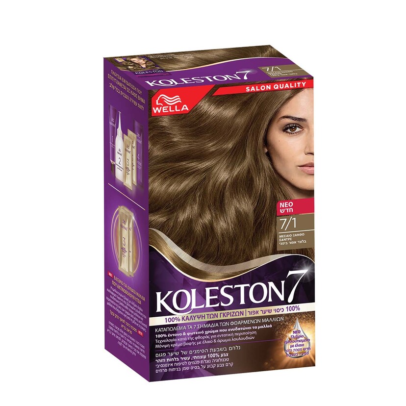 Βαφή μαλλιών WELLA Koleston ξανθό μεσαίο σαντρέ no.7/1 με κρέμα αναζωογόνησης χρώματος (50ml)