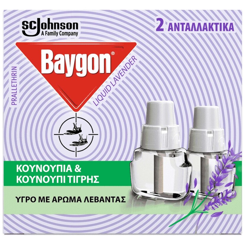 BAYGON εντομοαπωθητικό υγρό λεβάντα ανταλλακτικά 90ν 2x27ml