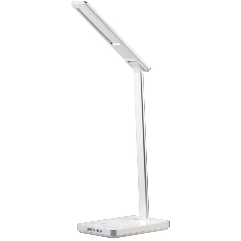 BECKHER MI-LCH 2100 USB λευκό φωτιστικό γραφείου LED με αναδιπλούμενο βραχίονα και ασύρματη φόρτιση