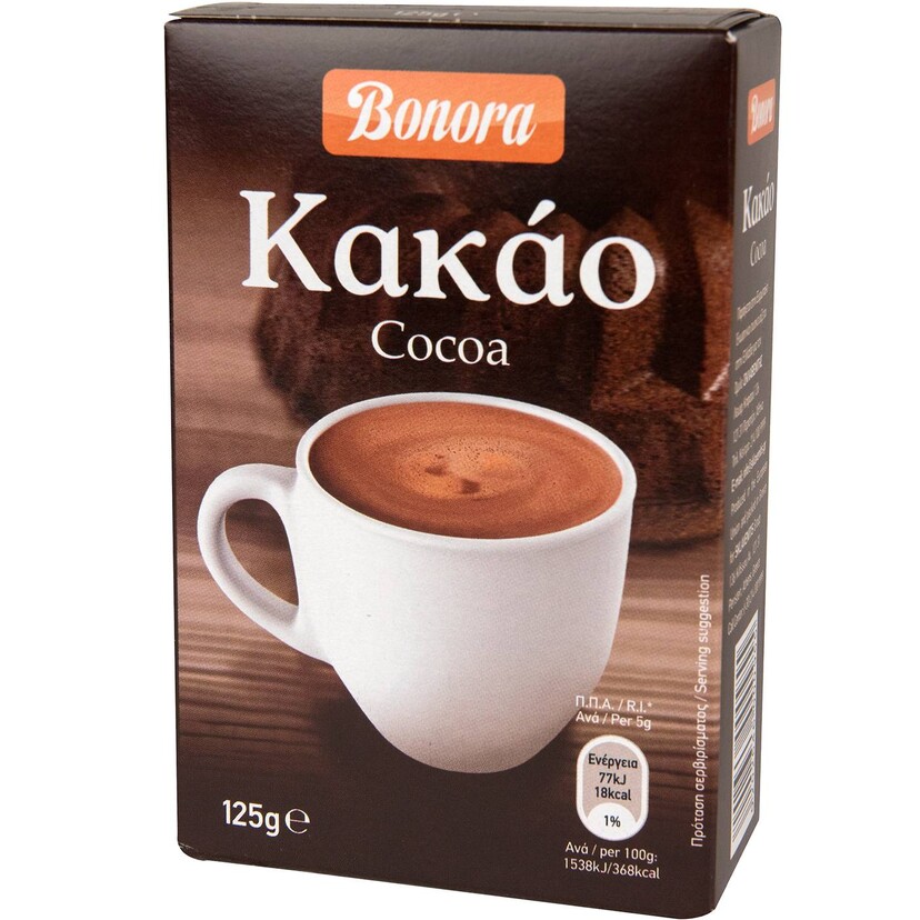 Κακάο σε σκόνη Bonora. Συνίσταται για τη παρασκευή ροφήματος και γλυκών.