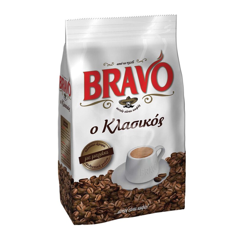 Αλεσμένος ελληνικός καφές, της εταιρείας Bravo, για εσάς που θέλετε να απολαύσετε έναν γευστικό καφέ, όλες τις ώρες της ημέρας. Για την παρασκευή ενός καλού ελληνικού καφέ, η τεχνική είναι το παν. Σημαντικά είναι όλα τα στάδια, από τις δοσολογίες, το ανακάτεμα και φυσικά το πότε θα βγει από τη φωτιά.