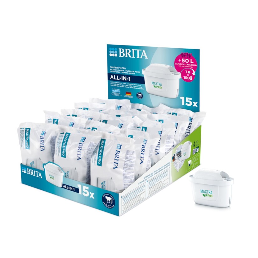 Το φίλτρο νερού BRITA MAXTRA PRO All-in-1 είναι σχεδιασμένο για να βελτιώνει την ποιότητα και τη γεύση του νερού βρύσης, μειώνοντας αποτελεσματικά ακαθαρσίες όπως χλώριο, άλατα, βαρέα μέταλλα, καθώς και συγκεκριμένα ζιζανιοκτόνα, φυτοφάρμακα και φαρμακευτικά κατάλοιπα.