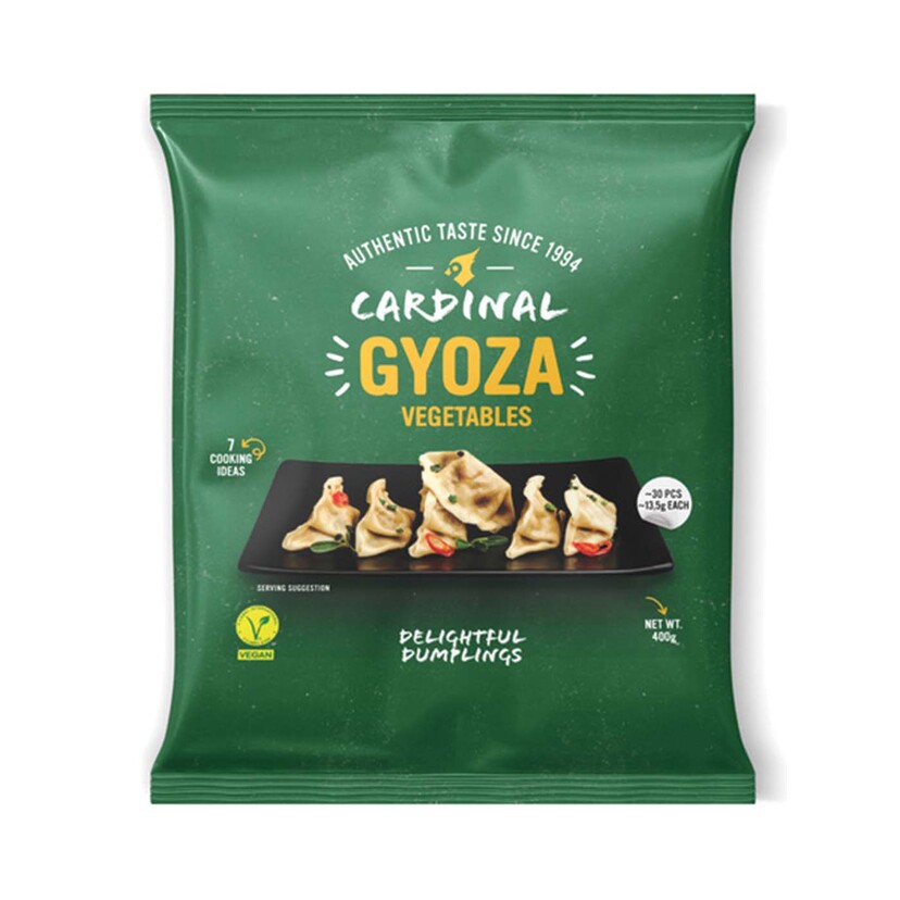 Τα πιτάκια Gyoza με λαχανικά της εταιρείας Cardinal είναι κατεψυγμένα ιαπωνικά ντάμπλινγκς με γέμιση από φρέσκα λαχανικά, προσφέροντας μια αυθεντική ασιατική γευστική εμπειρία.