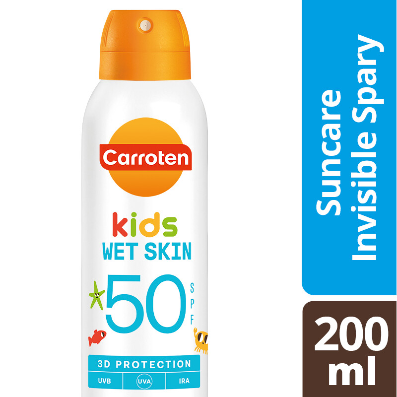 Το Carroten πηγαίνει την παιδική αντηλιακή προστασία ένα βήμα μπροστά, και εστιάζει στις ιδιαίτερες δερματολογικές ανάγκες των παιδιών, προσφέροντας ολιστική 3D προστασία απέναντι στις 3 πιο επιβλαβείς για την επιδερμίδα ακτινοβολίες (UVA+UVB+IRA). Το διάφανο αντηλιακό Carroten Kids Wet Skin spray SPF50, παρέχει 360ο σύστημα ψεκασμού που προσφέρει άμεση προστασία χωρίς άπλωμα ή λευκά σημάδια κάνοντας την προστασία να μοιάζει με παιχνίδι. ΔΕΡΜΑΤΟΛΟΓΙΚΑ ΚΑΙ ΠΑΙΔΙΑΤΡΙΚΑ ΕΛΕΓΜΕΝΟ ΠΟΛΥ ΑΝΘΕΚΤΙΚΟ ΣΤΟ ΝΕΡΟ ΕΦΑΡΜΟΓΗ ΣΕ ΥΓΡΟ & ΣΤΕΓΝΟ ΔΕΡΜΑ ΓΙΑ ΑΝΩ ΤΩΝ 3 ΕΤΩΝ