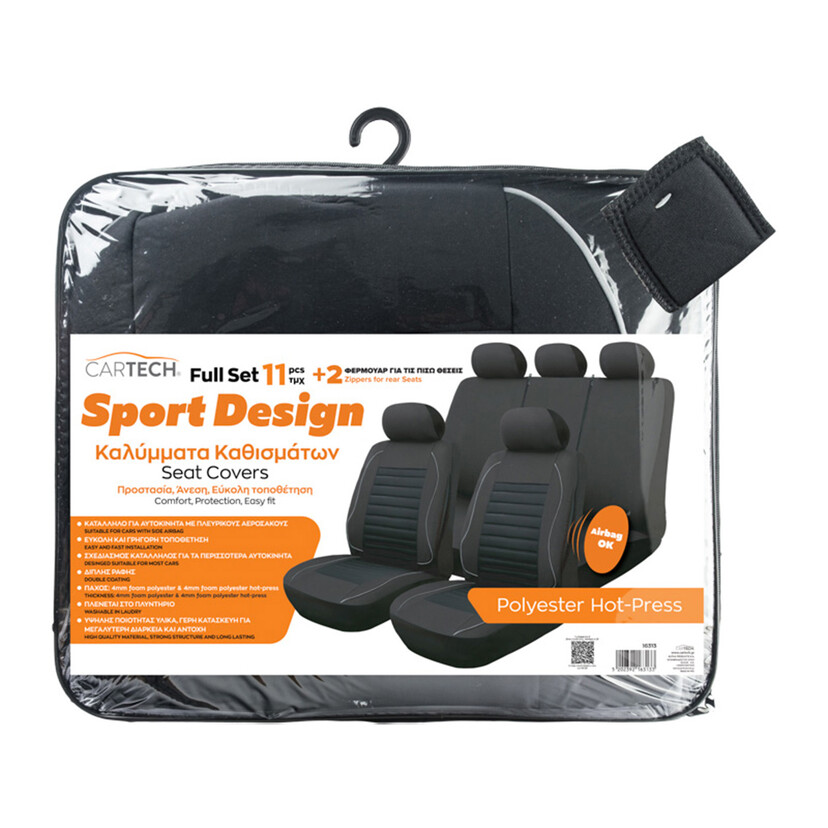CARTECH καλύμματα καθισμάτων Full Set Sport Design μαύρο - γκρι 11τεμ.