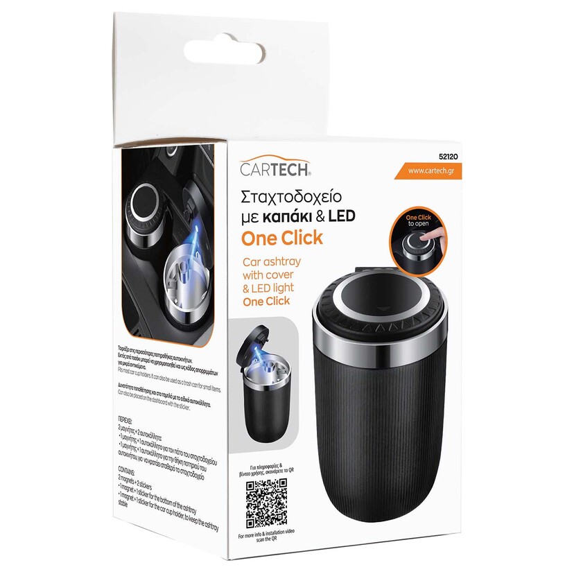 Το CARTECH Σταχτοδοχείο με Καπάκι και LED είναι ένα πρακτικό αξεσουάρ για το αυτοκίνητό σας, σχεδιασμένο να διατηρεί το εσωτερικό καθαρό και οργανωμένο.