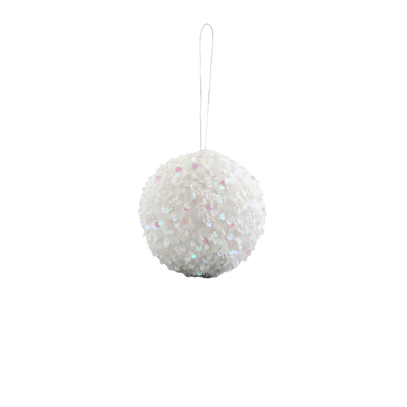 Χριστουγεννιάτικη μπάλα λευκή με πούλιες 10cm