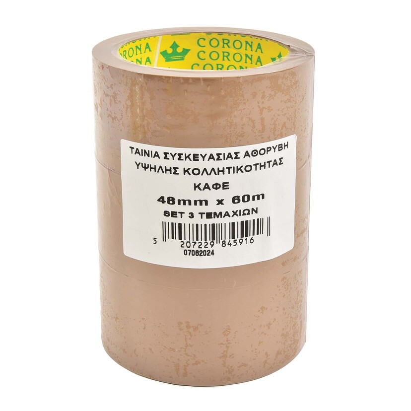 CORONA ταινία συσκευασίας αθόρυβη καφέ 48x60m 3τεμ.