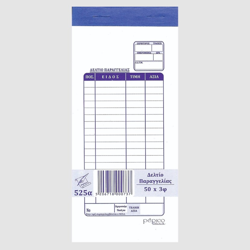 Δελτίο παραγγελίας εστιατορίου 10τεμ. 3x50φύλλα