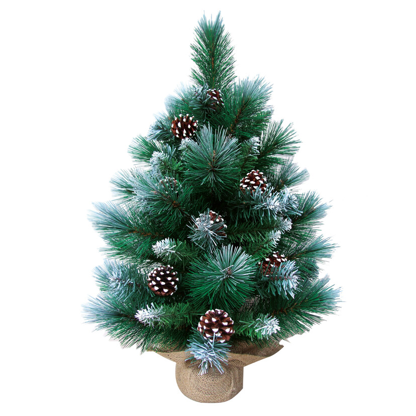 Δέντρο πράσινο με λινάτσα χιονισμένο με κουκουναρια 60cm