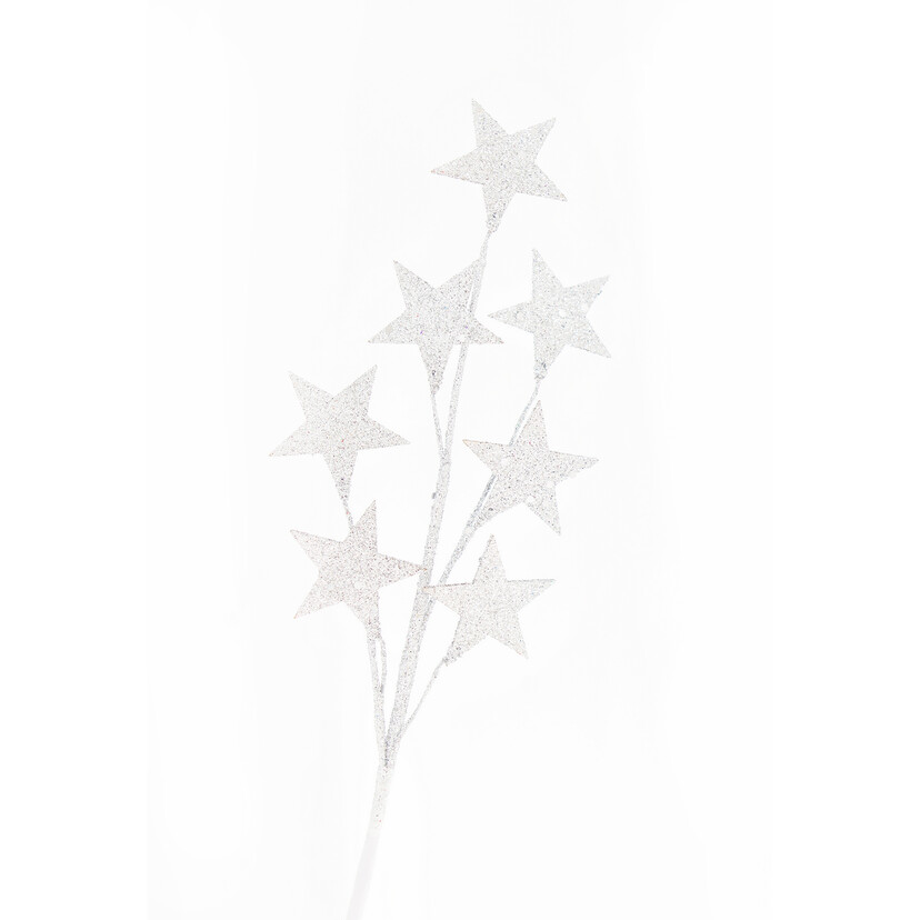 Διακοσμητικό κλαδί λευκό με Glitter και αστέρια 46cm