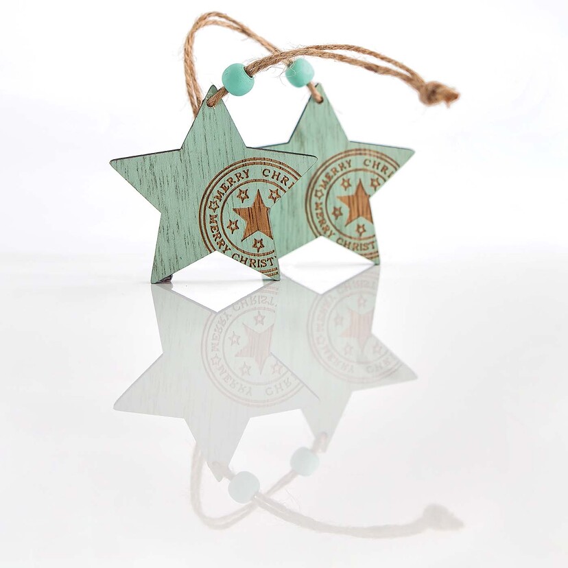 Διακοσμητικό στολίδι αστέρι ξύλινο μέντα 23cm 2τεμ