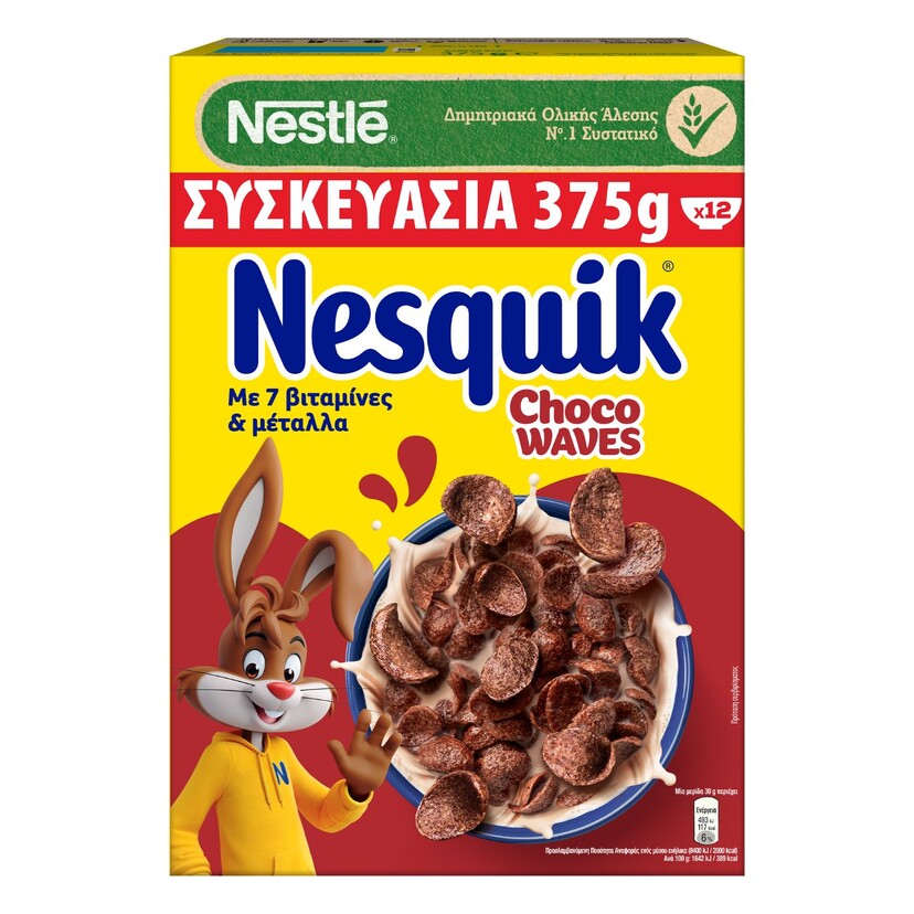 Τα δημητριακά NESQUIK Choco Waves προσφέρουν απολαυστική σοκολατένια γεύση και τραγανή υφή, ιδανικά για ένα δυναμικό ξεκίνημα της ημέρας. Τα κυματιστά σοκολατένια δημητριακά συνδυάζονται τέλεια με γάλα, προσφέροντας πλούσια γεύση και ευχάριστη εμπειρία στο πρωινό. Αποτελούν εξαιρετική επιλογή τόσο για μικρούς όσο και για μεγάλους.
