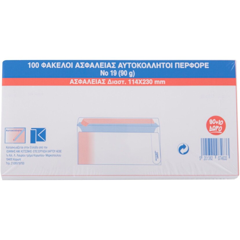 Φάκελος 19-90 ασφαλείας 11,4x23cm με αυτοκόλλητο 100τεμ.