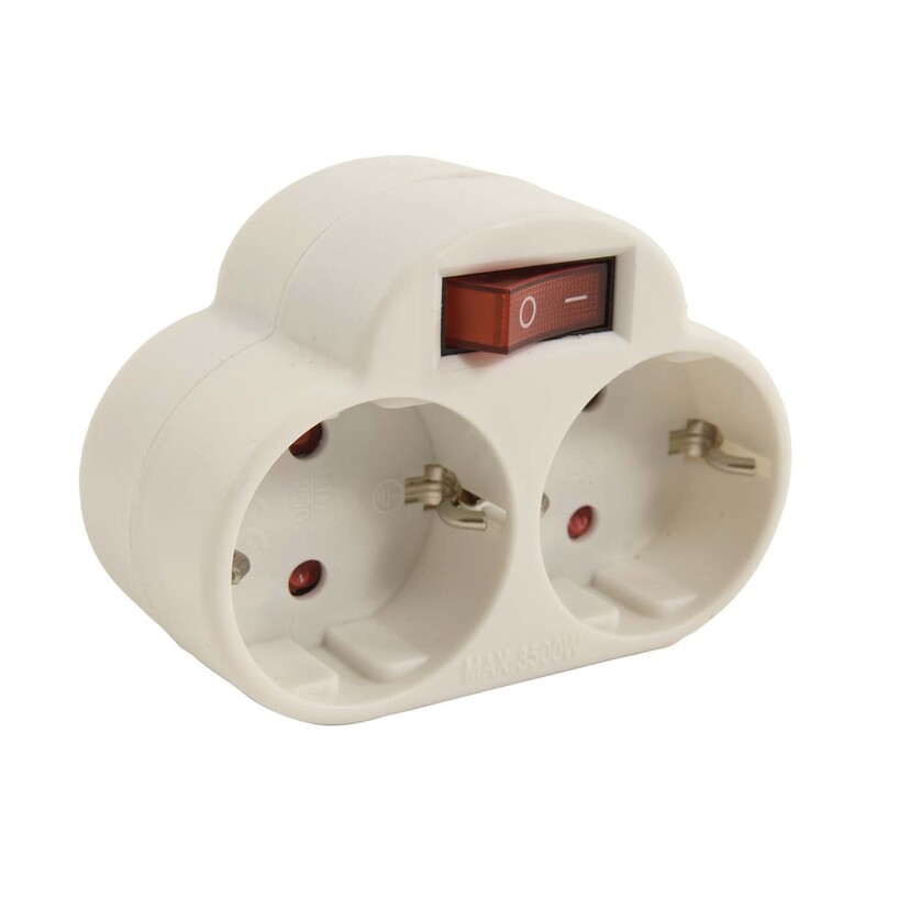EUROLAMP αντάπτορας σούκο 2 θέσεων με διακόπτη