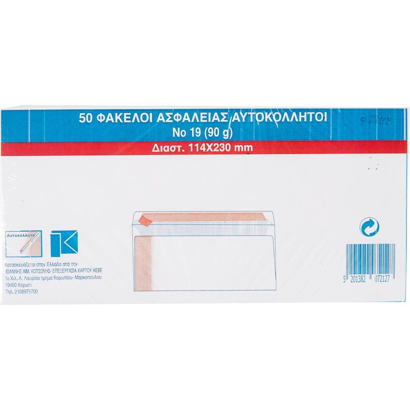 Φάκελος 19-90 ασφαλείας 11,4x23cm με αυτοκόλλητο (50τεμ.)