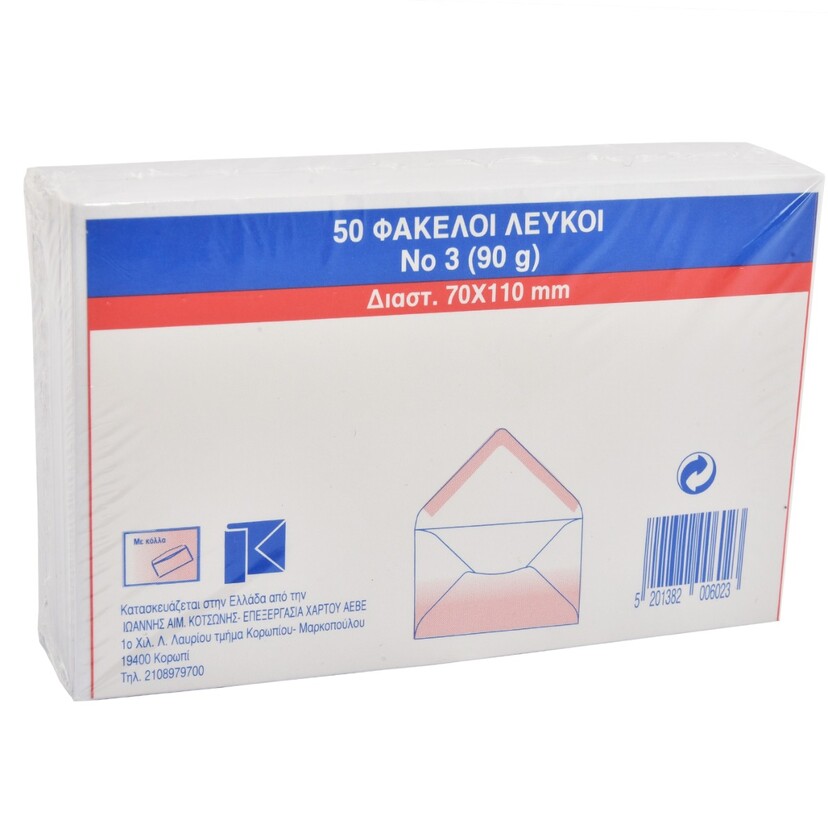 Φάκελος 3-90 λευκός με γόμα 7x11cm 50τεμ.