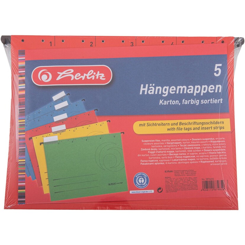 HERLITZ φάκελος κρεμαστός Α4 χρωματιστός 5τεμ.