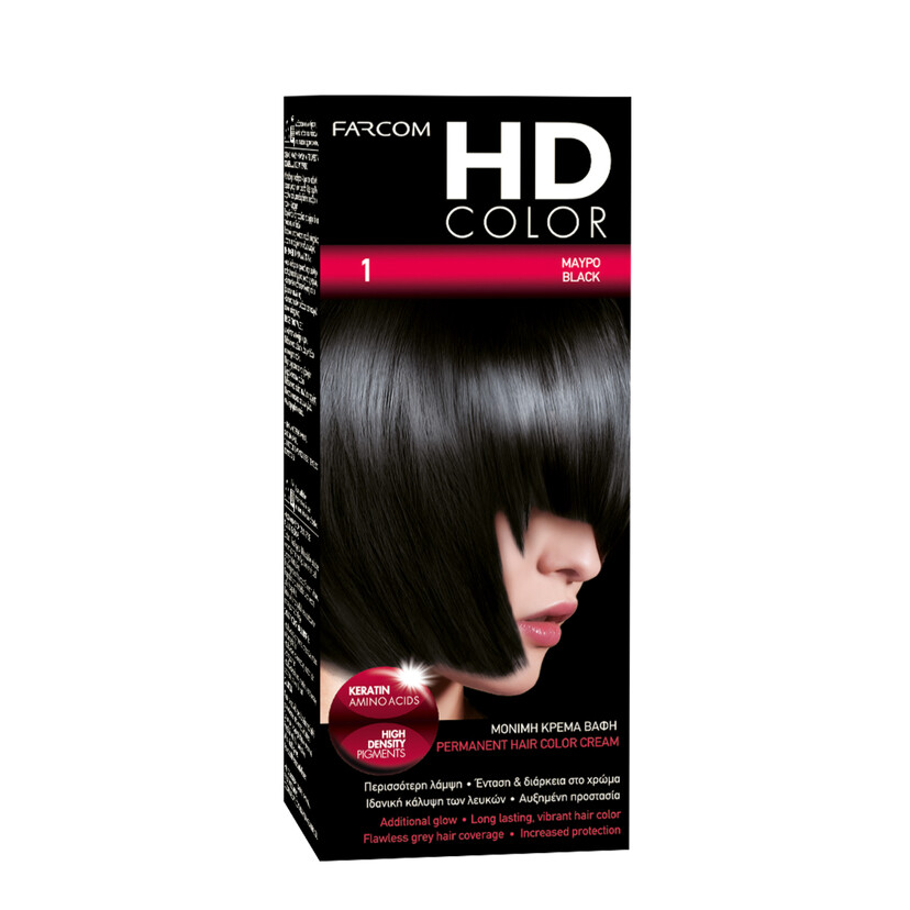FARCOM σέτ βαφής μαλλιών HD Color No.1 μαύρο