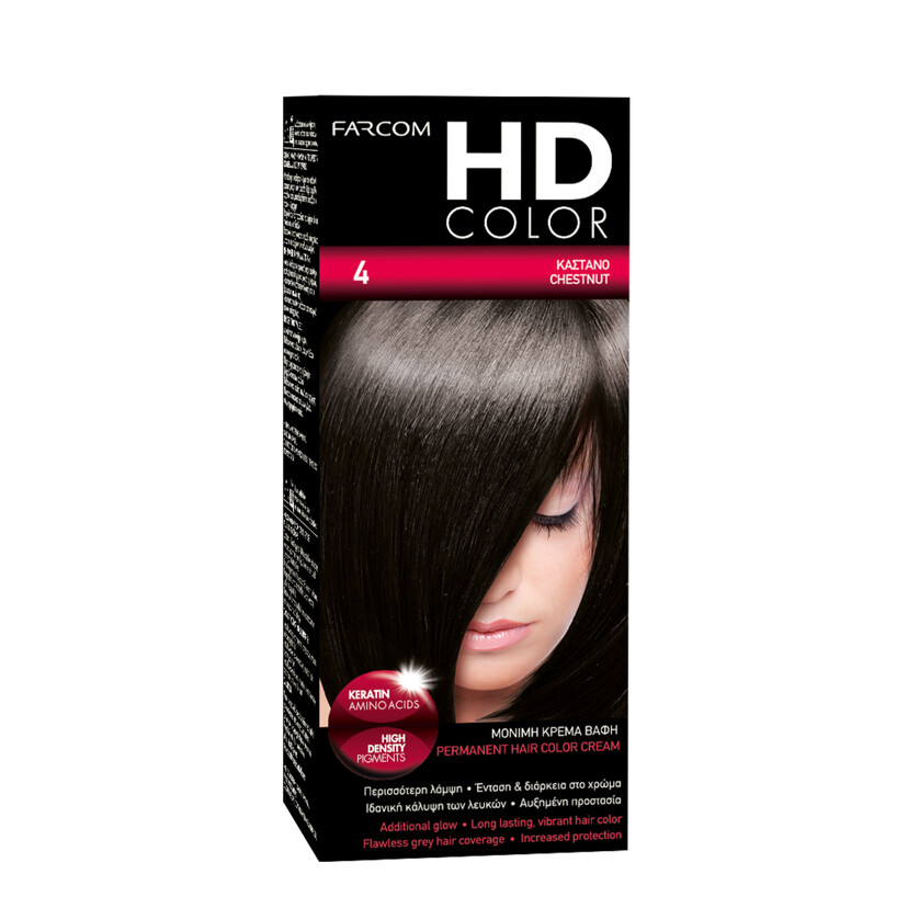 FARCOM σέτ βαφής μαλλιών HD Color No.4 καστανό