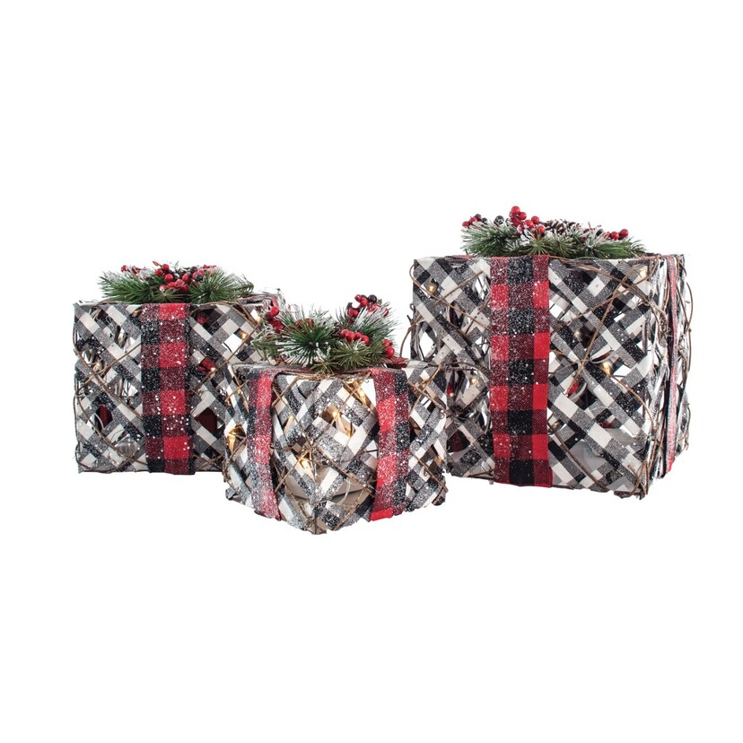 Κουτιά δώρου φωτιζόμενα μπαταρίας LED ασπρόμαυρα 15cm20cm25cm σετ 3 τεμ.