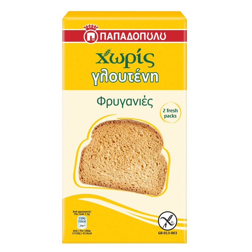 Φρυγανιές ΠΑΠΑΔΟΠΟΥΛΟΥ χωρίς γλουτένη (165g)
