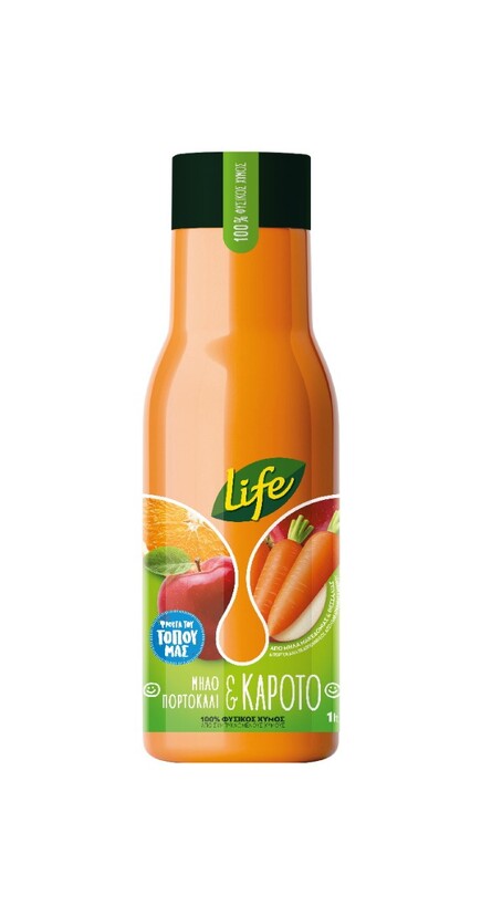 Φυσικός χυμός LIFE μήλο, πορτοκάλι, καρότο μπουκάλι (1lt)