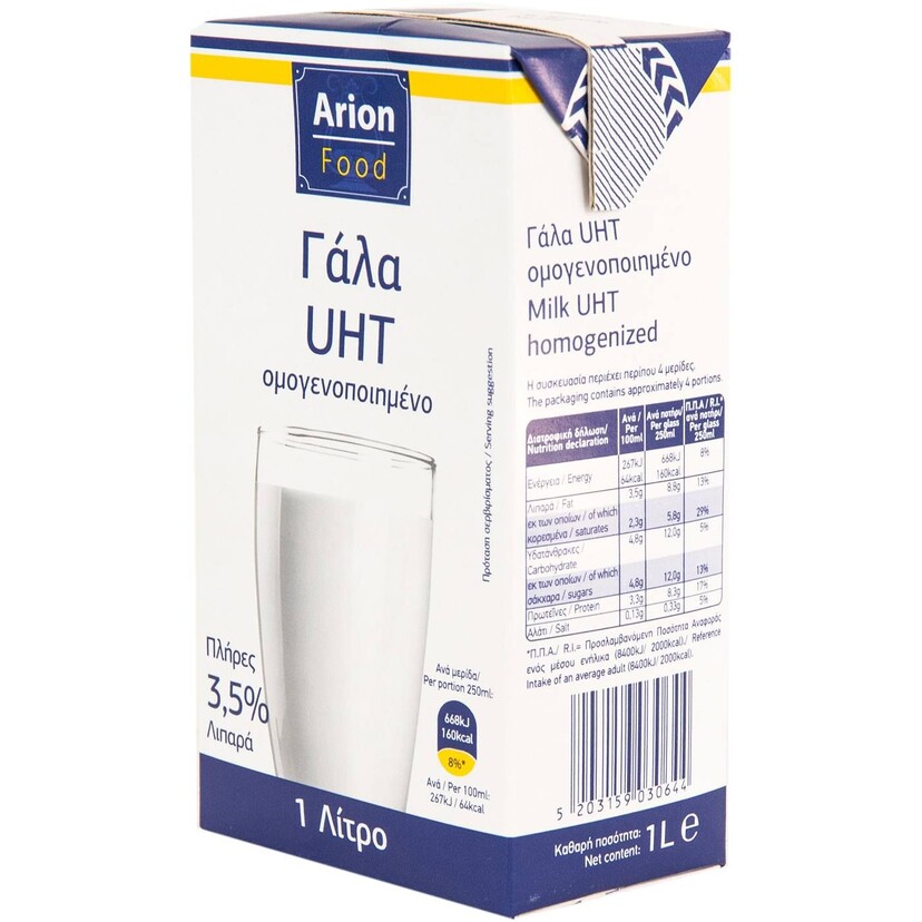 Γάλα ARION FOOD μακράς διαρκείας πλήρες 3,5% λιπαρά (1lt)