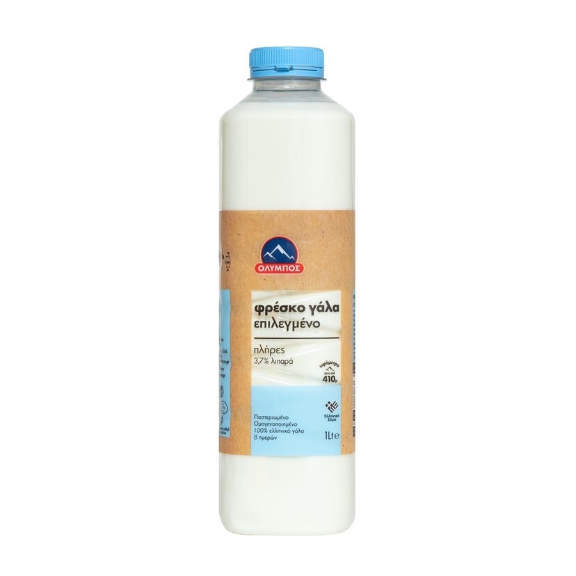 Το φρέσκο γάλα ΟΛΥΜΠΟΣ επιλεγμένο με λίπος 3,7% παράγεται από 100% ελληνικό φρέσκο γάλα. Το 100% ελληνικό φρέσκο γάλα ΟΛΥΜΠΟΣ επιλεγμένο συλλέγεται καθημερινά από επιλεγμένες φάρμες που βρίσκονται σε μικρές αποστάσεις από τις εγκαταστάσεις μας, σε υψόμετρο πάνω από τα 410m και πληροί αυστηρότερα στάνταρ από αυτά που προβλέπει η ευρωπαϊκή νομοθεσία. Αυτή η μοναδικότητα του είναι που μπορεί και κάνει το Φρέσκο Γάλα ΟΛΥΜΠΟΣ επιλεγμένο, σπάνιο.